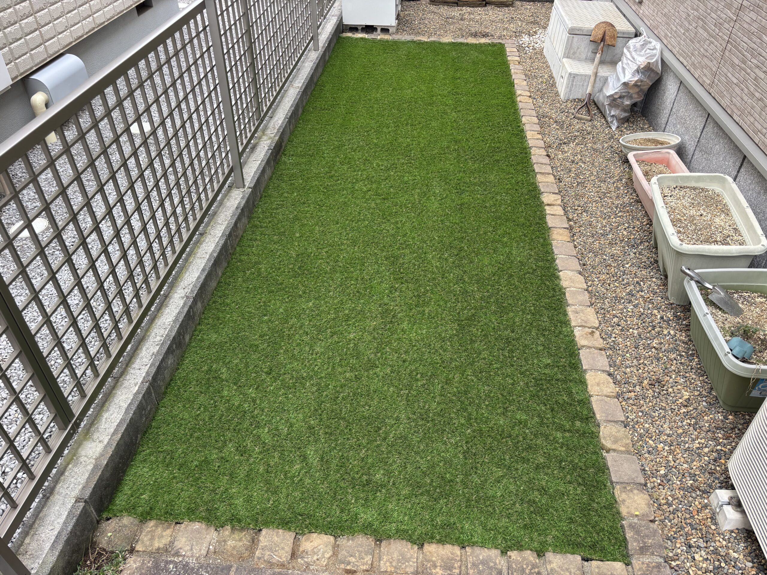 早速ですが、先日さいたま市にて施工した人工芝の画像を添付しました^ – ^